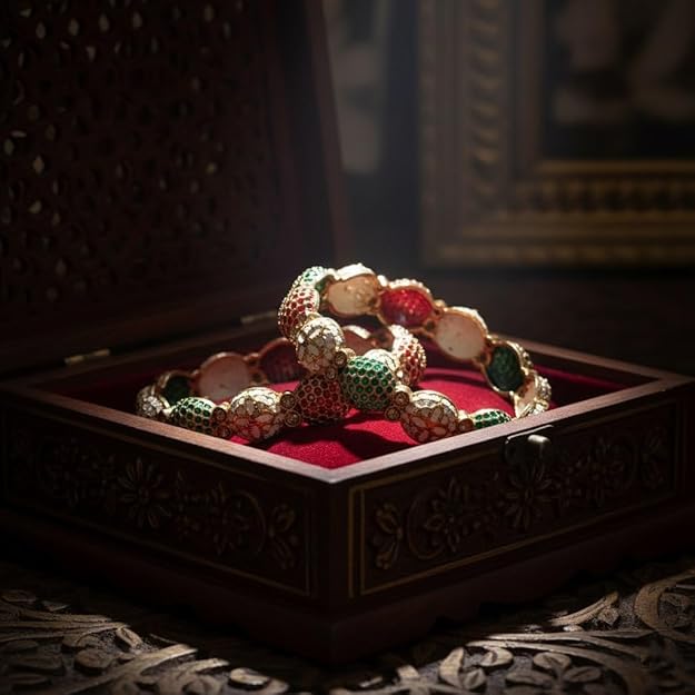 Embrace timeless tradition with the SAMYA BY SAMISHTHA Classic Indian Bangle Set. This exquisite set embodies cultural charm with a design that is both elegant and enduring. Each bangle is handcrafted to feature classic Indian motifs and detailing, offering an authentic ethnic look. Finished with a durable premium finish, these bangles maintain their luster and beauty for years. Perfect for adding a touch of traditional sophistication to festive celebrations, ethnic events, or simply enhancing your daily attire with classic Indian elegance.