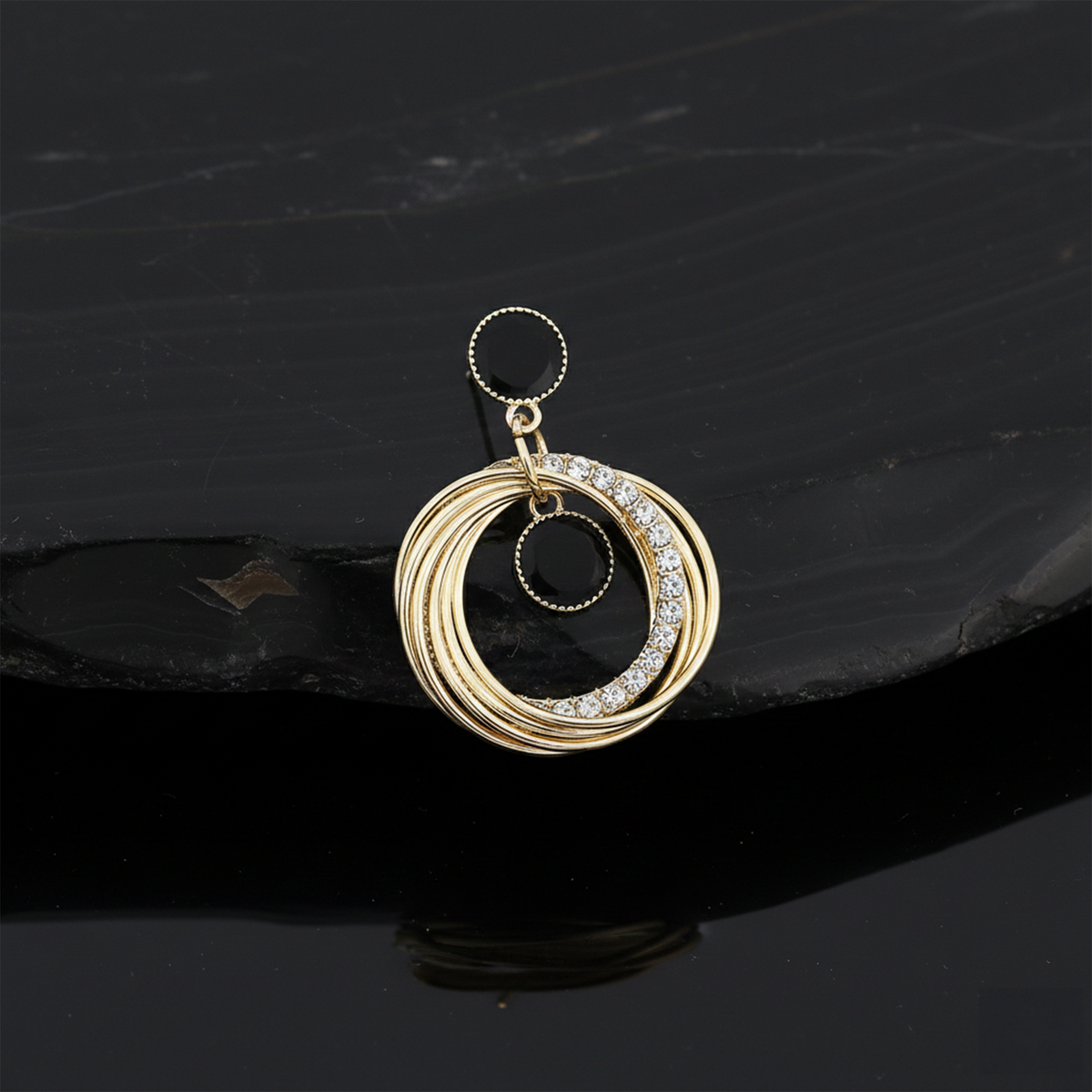 Gold Plated Black Stone Hoop Drop Earrings for Women