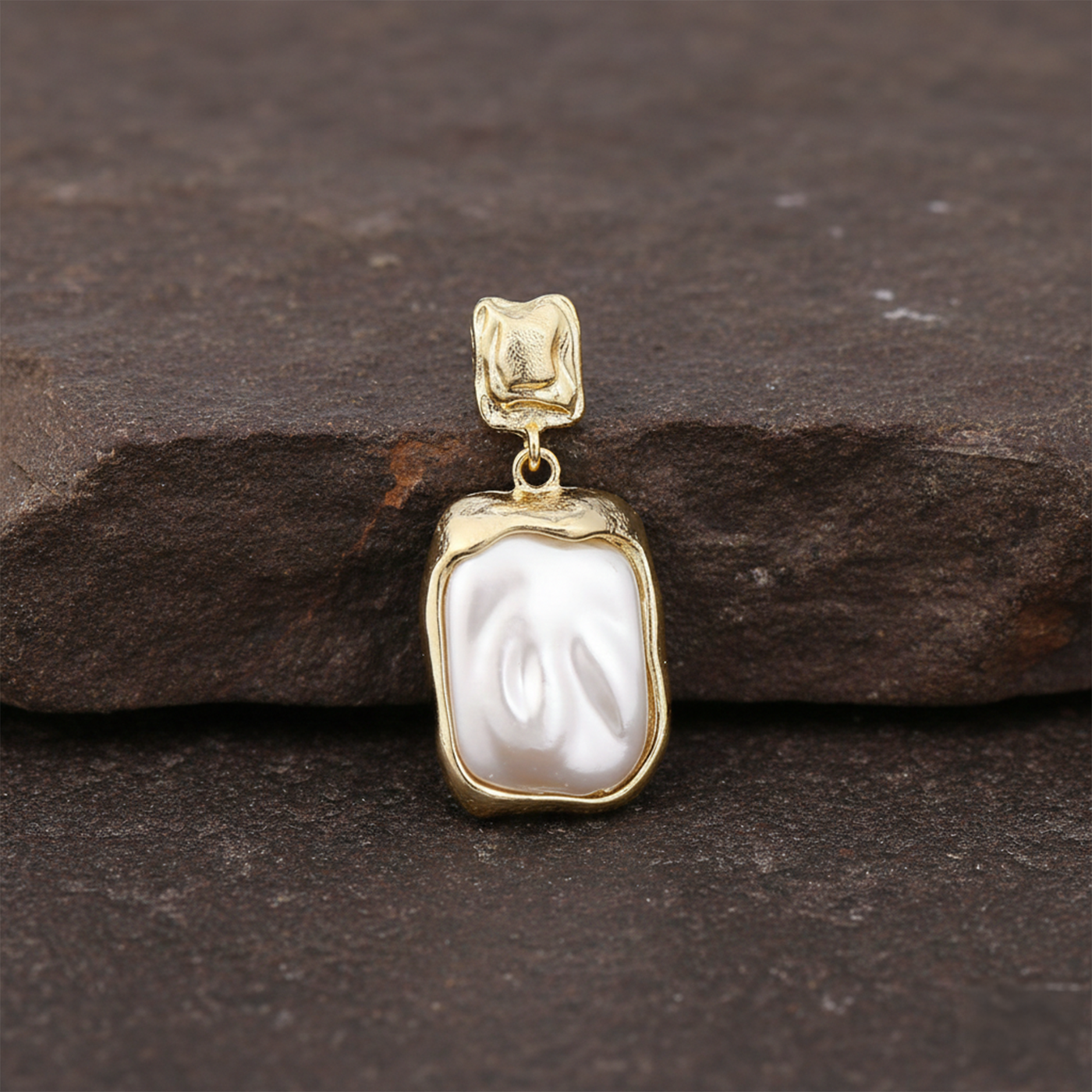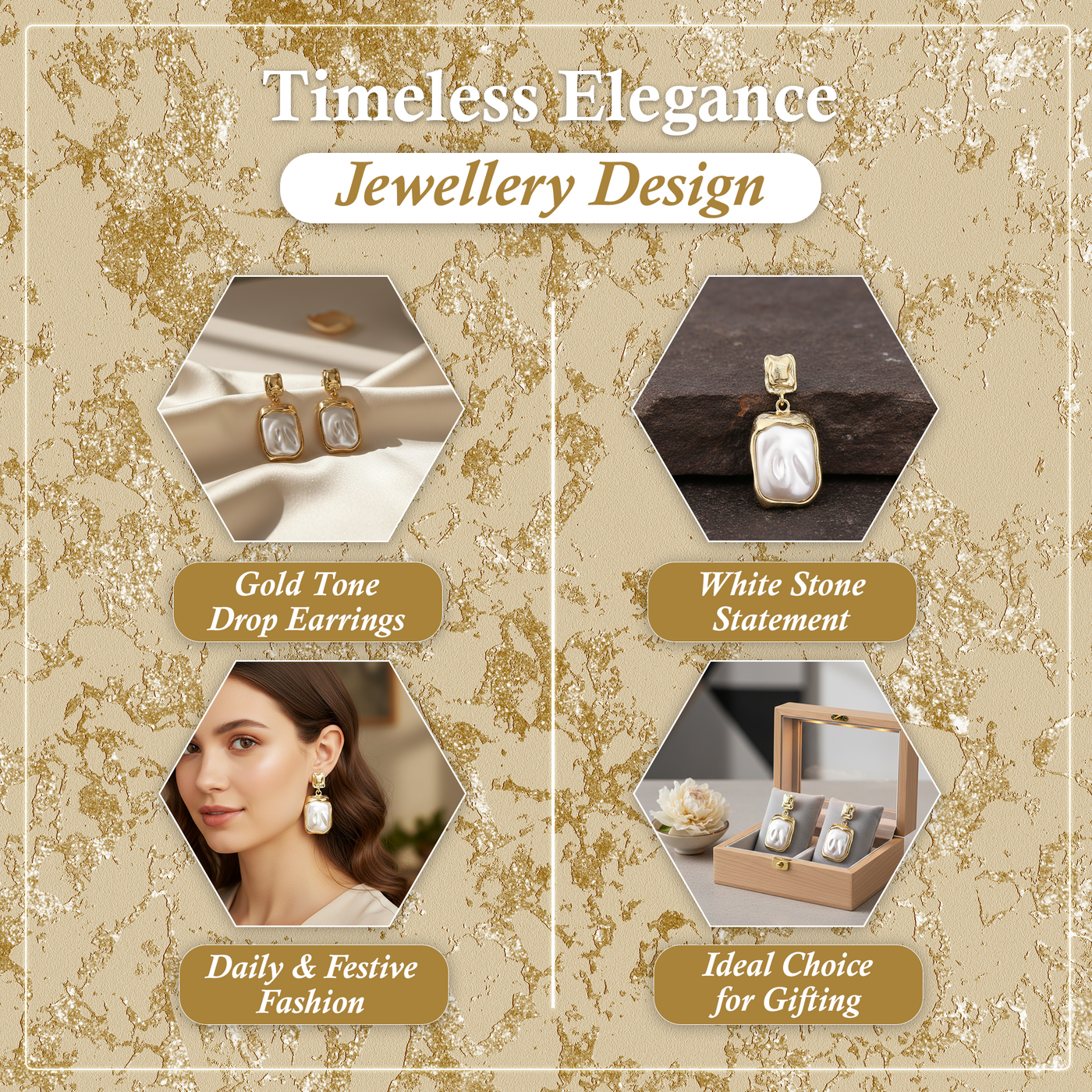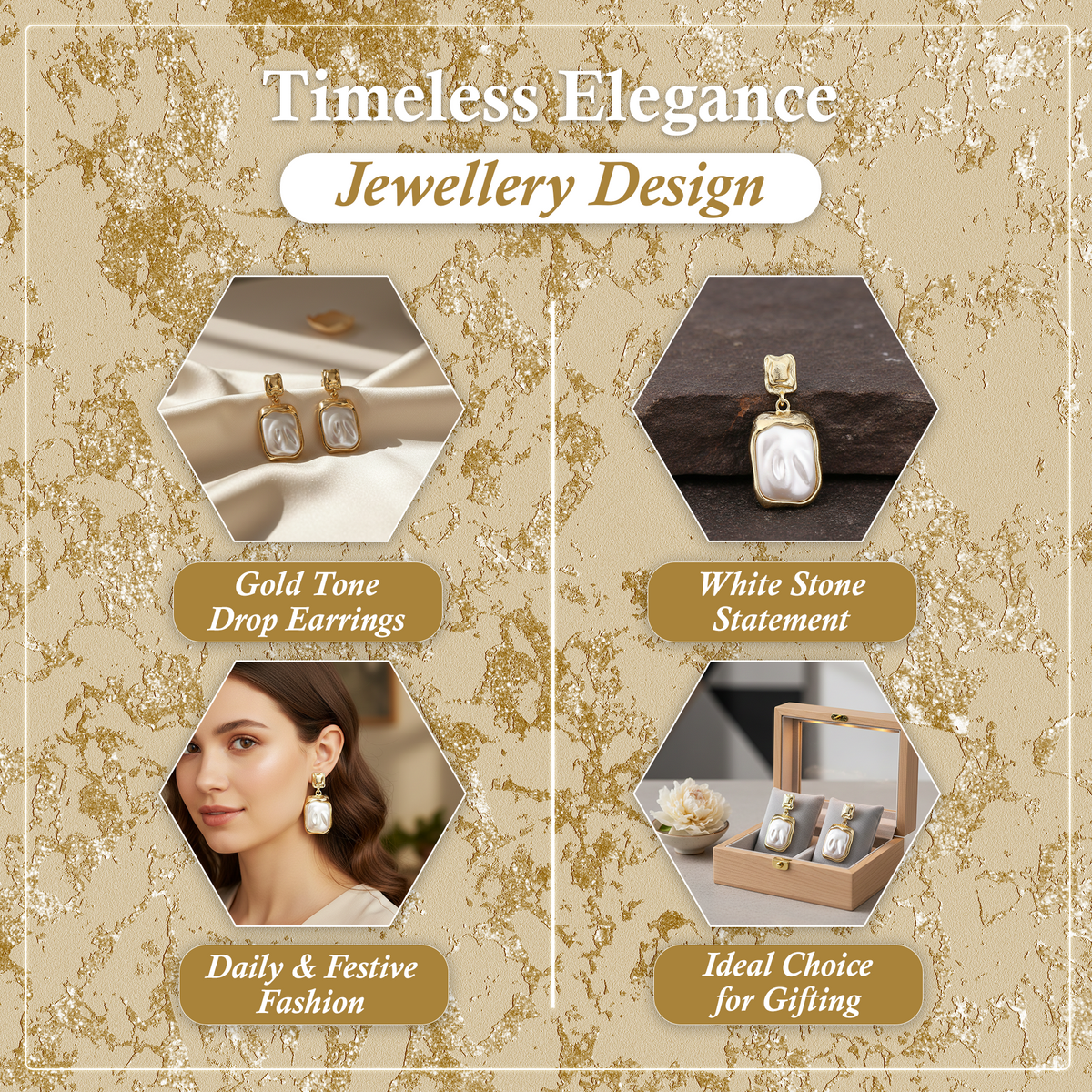 Gold Tone Drop Earrings with Rectangular Design for Women