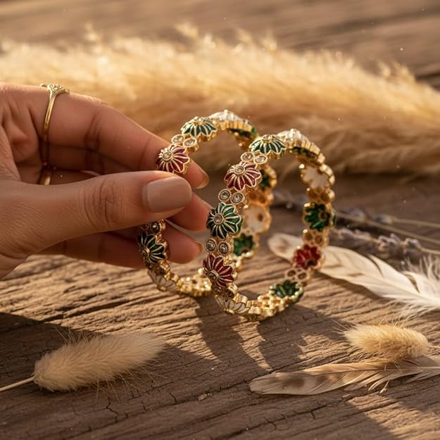 Set of 2 Multicolor Metal Motif Intricate Bangles - 2-4